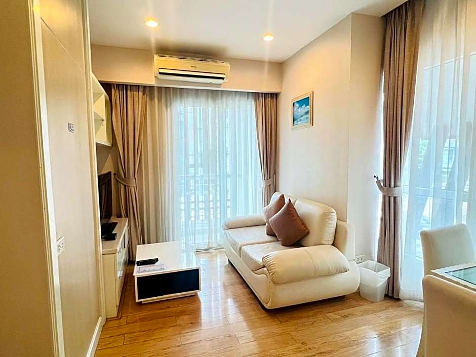 This family room features two bedrooms and a living room.